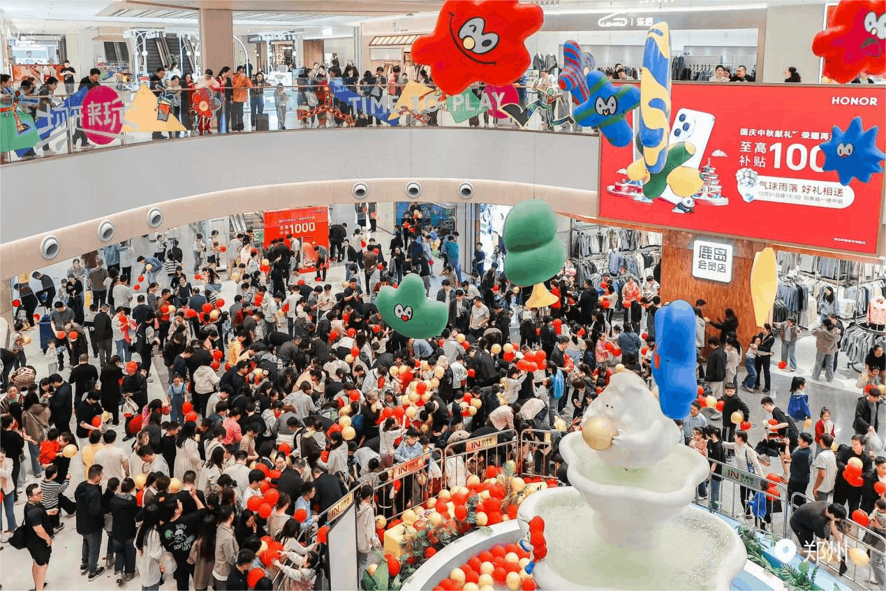 鄭州嵩南印象城推出《長(zhǎng)長(zhǎng)來(lái)相聚》及國(guó)慶消費(fèi)券派發(fā)等系列活動(dòng),以“嫦娥巡游”“海底撈月鵝”等趣味互動(dòng)活動(dòng),為周邊居民提供家門(mén)口的假日休閑選擇,廣受周邊消費(fèi)者喜愛(ài)。同時(shí),嵩南印象城通過(guò)“項(xiàng)目搭臺(tái)品牌唱戲”,聯(lián)動(dòng)場(chǎng)內(nèi)品牌舉辦國(guó)慶中秋獻(xiàn)禮氣球雨、月餅DIY等多場(chǎng)活動(dòng),拉近鄰里關(guān)系的同時(shí)激活商業(yè)活力。國(guó)慶中秋期間共計(jì)接待客流35萬(wàn)人次,銷(xiāo)售業(yè)績(jī)1200萬(wàn)元。